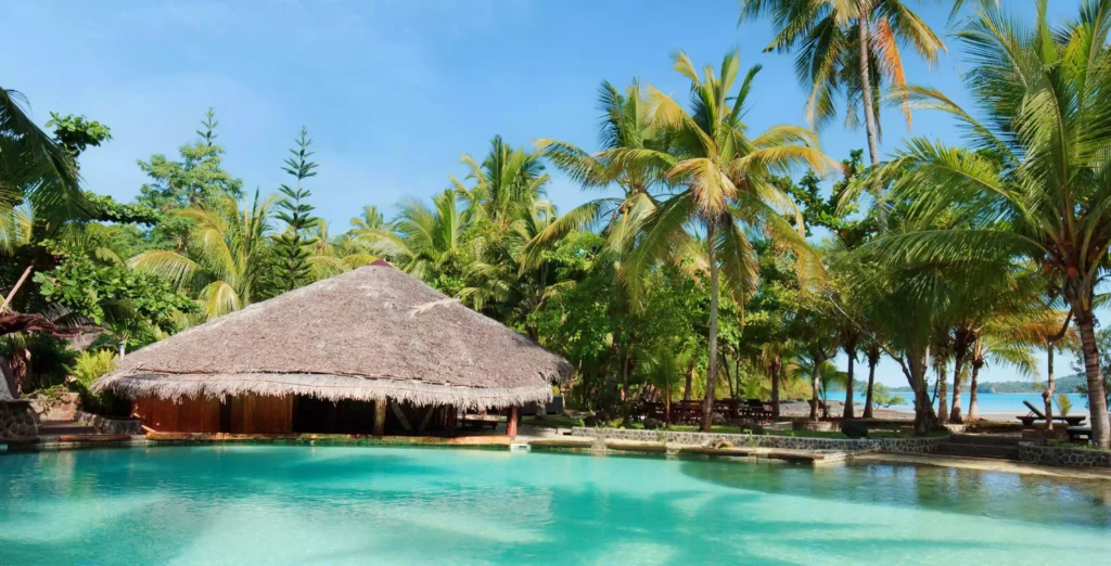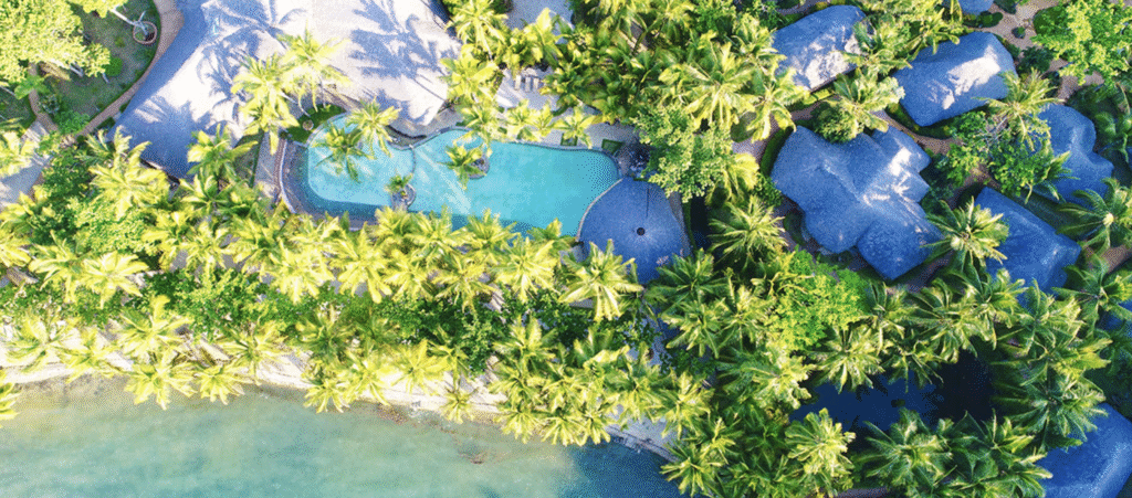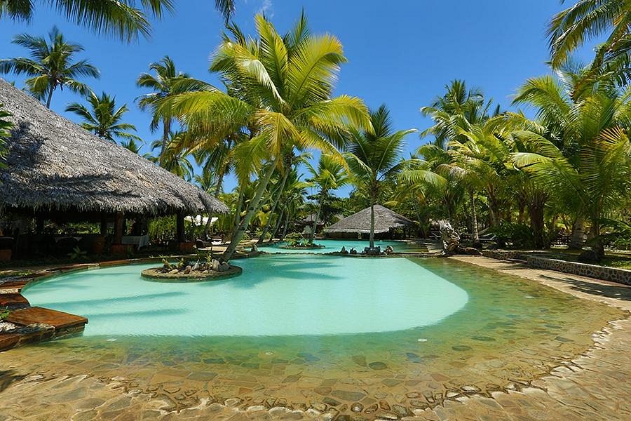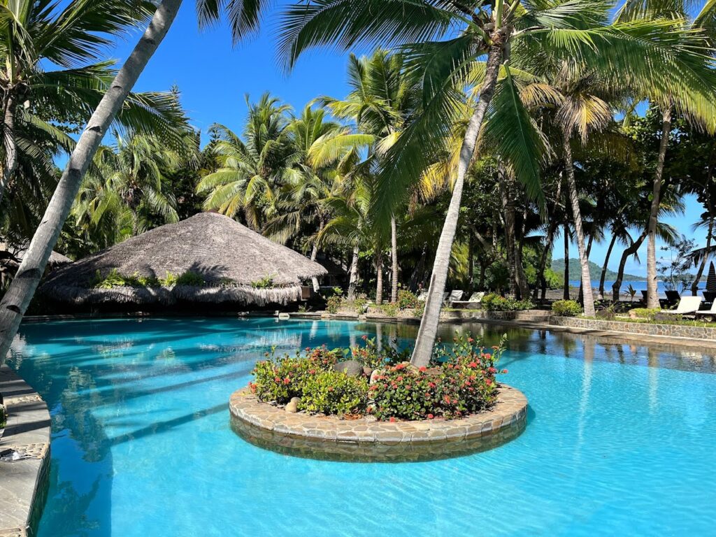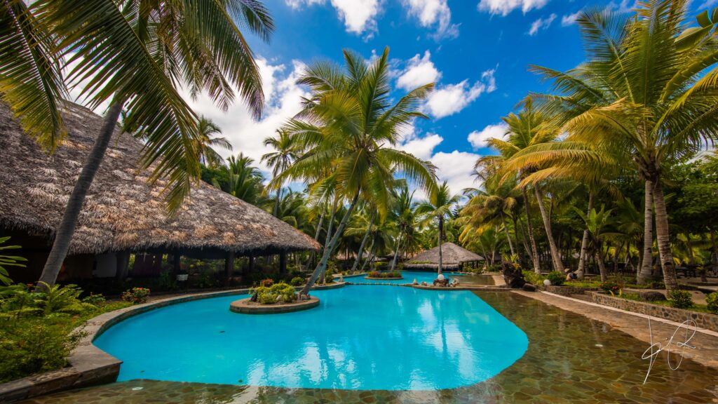 Au cœur du jardin, notre piscine double invite à la détente : un grand bassin aux formes harmonieuses pour nager ou rêver, et un petit bain pensé pour les enfants. Entre le bar, les transats et la douceur du climat de Nosy Be, chaque instant au bord de l’eau devient une parenthèse de pur bonheur.